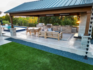 From the beginning, the family wanted a backyard that felt cohesive, fun, and practical. At the same time, they needed room for kids to stay active while also creating comfortable spaces for adults to entertain. Although the lot shape created design challenges, the goal remained clear: build a pool and outdoor environment that could handle big gatherings, playtime, and everyday family life.