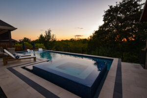 Because of this approach, we avoid scheduling delays and reduce miscommunication. Additionally, our crews understand the project from day one, which helps us maintain consistent quality across every detail. From the sharp geometric lines to the smooth integration of the raised spa and spillover, our team executes each feature with precision.