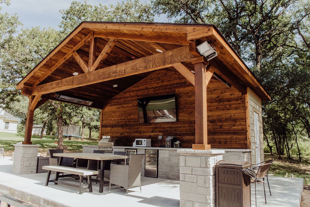 Building an outdoor kitchen near your pool has many entertaining benefits. This idealistic setup allows the chef and guest to socialize, swim, sunbathe, and drink in one simplistic outdoor living space. In addition, you can situate your outdoor kitchen underneath the shade, so your poolside guests can enjoy a relaxing summer day by the pool!