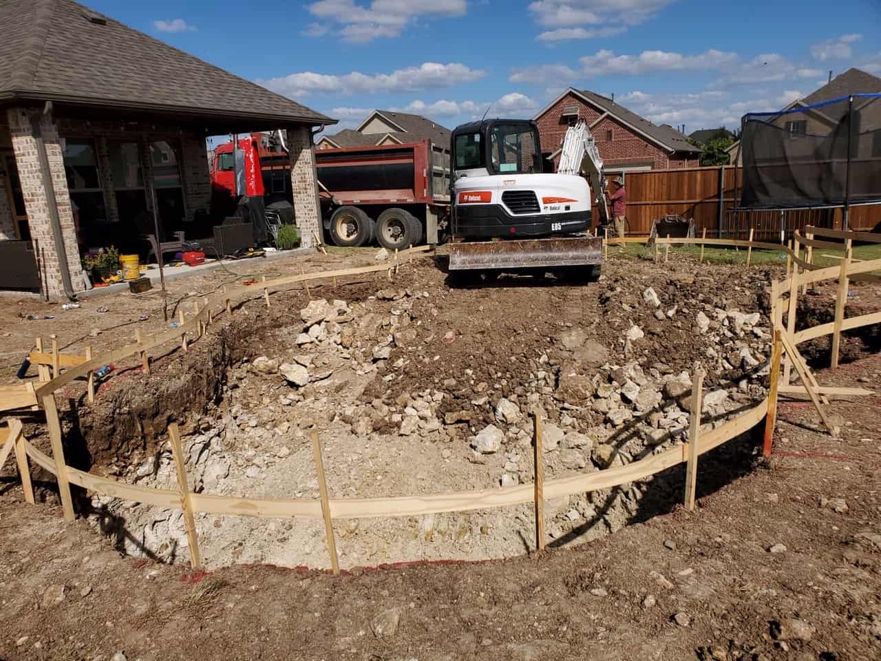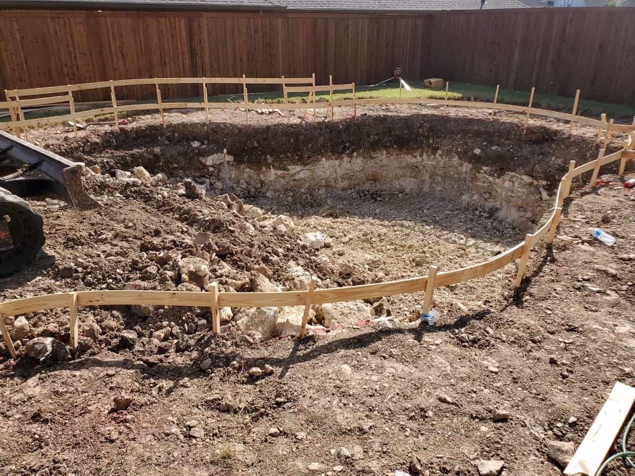 Access to the backyard was challenging due to the neighbor proximity. We used lower profile machinery to mitigate these issues. Another problem we encountered was hitting rock at 2-3’ of dig depth. We reduced/limited the customer’s cost by bringing in an oversized rock hammer to reduce the homeowner’s rock charge.